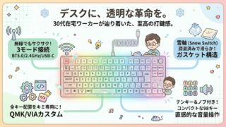 在宅ワークの孤独な時間を自分だけの贅沢に変えませんか?透明な名機YUNZII X98は、指先から心を癒やす究極の相棒です。ただし、慣れが必要な「毒」もあります。効率だけを求める人には教えたくない、30代オタクな会社員が本音で綴る、人生の質を変えるキーボード選びの真実を、あなただけに届けます。