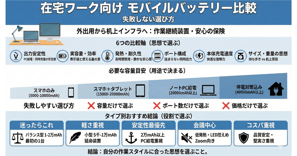 まとめ|在宅ワーク向けモバイルバッテリー比較の結論