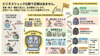 ガジェット 在宅ワーカー向けビジネスリュック比較|選び方を間違えると後悔する5つの基準 在宅ワーク中心の30〜40代男性向けに、ビジネスリュックの選び方を徹底解説。容量や軽さではなく「後悔しない基準」で比較しています。失敗する人の共通点と、5つの判断軸から自分に合う1つを見つけたい人へ。 ガジェットビジネスリュック