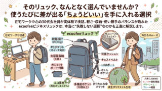ガジェット 在宅ワーク会社員が本音レビュー|ecoofeeビジネスリュックは“ちょうどいい”で終わるか? 在宅ワーク中心の30代会社員が、ecoofeeビジネスリュックを実体験ベースでレビュー。スペックだけでは分からない使い勝手、口コミの本音、メリット・デメリットを正直に解説。失敗しない選び方も紹介します。 ガジェットビジネスリュック